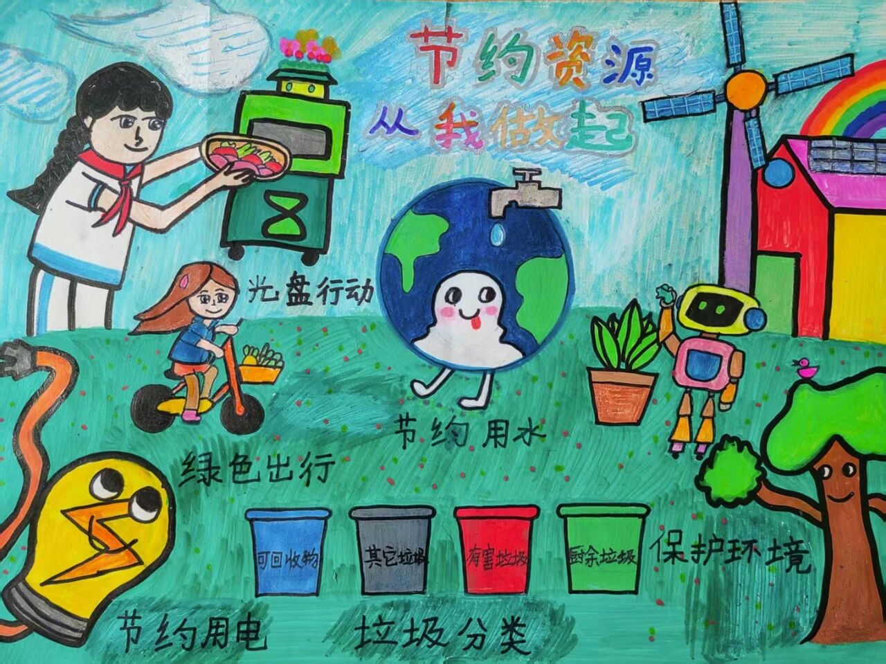 公司职工子女利用暑假时光积极创作,以新时代青少年的视角,充分展现对珍惜粮食、能源节约和践行绿色健康生活方式的认识,积极为环保事业贡献力量的愿景。
