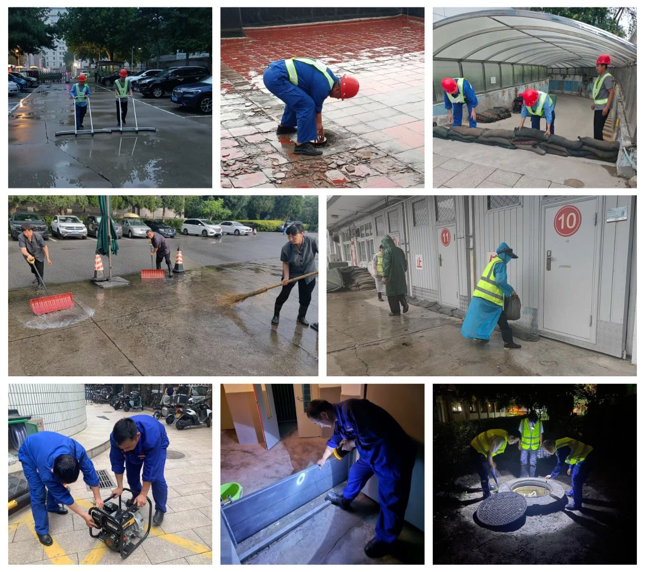 中广物业公司充分认识多轮持续性强降雨为防汛安全带来的不确定性,坚决杜绝麻痹思想和松懈情绪,持续压实各级防汛责任。公司主要负责人深入一线、加强调度,对防汛应急物资和公司防汛应急抢险小分队进行再检查、再部署。各项目盯紧守牢薄弱环节和重点部位,对地下空间、低洼处等329个防汛关键点位进行网格化巡查,重点部位封堵沙袋。在以往汛期易出现渗漏等问题重点区域,铺设地巾,放置水槽,并安排专人值守。密切关注雨情汛情变化,及时启动应急响应措施,确保最短时间内进行防汛应急处置。本次暴雨红色预警期间未出现险情,有力保障了辖区安全平稳运行。